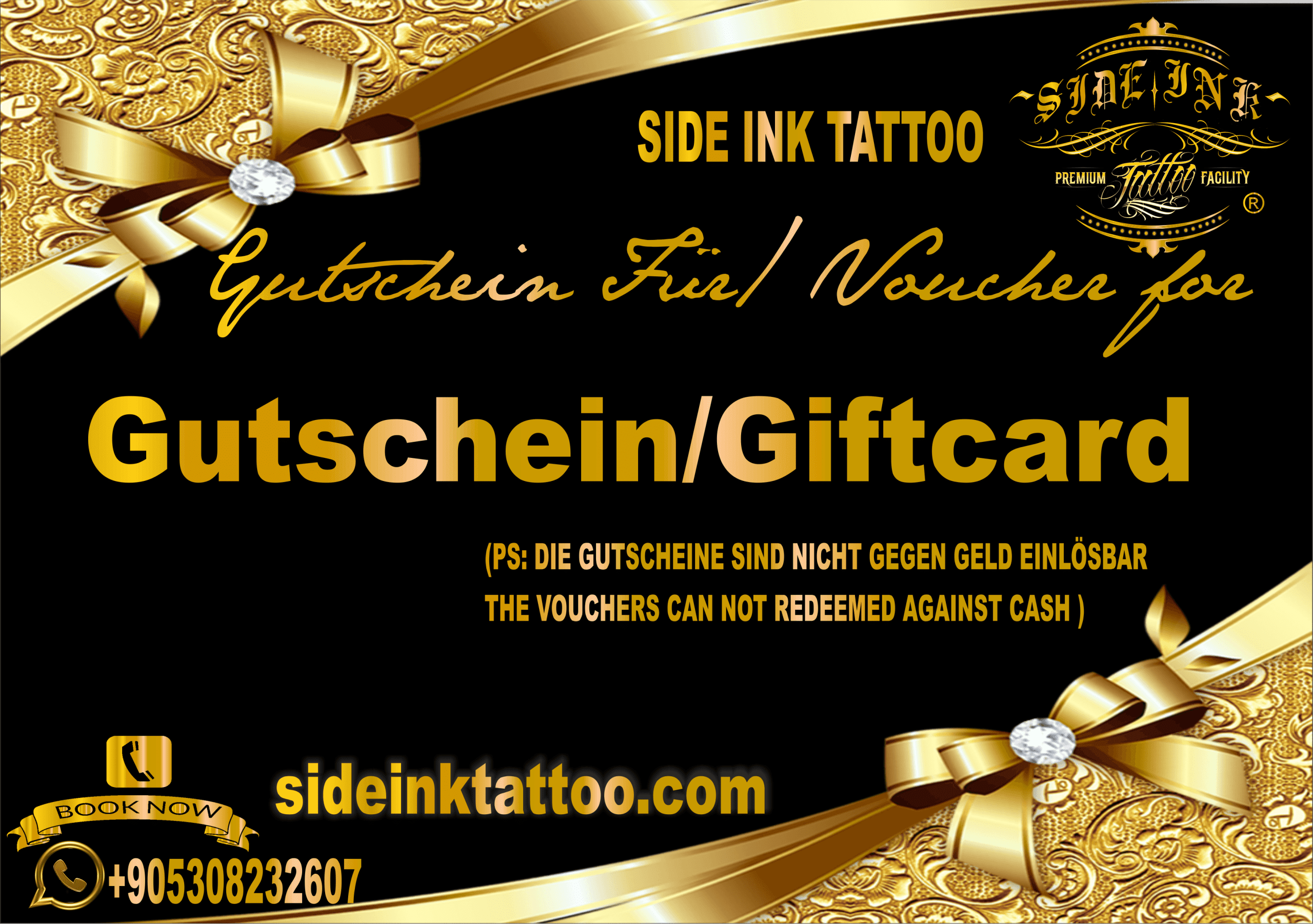 - Pro Person ist nur ein Gutschein mit gleichem Wert pro Termin einlösbar.Der betrag auf gutschein kann Max. auf 2 Tattoos geteilt werden.