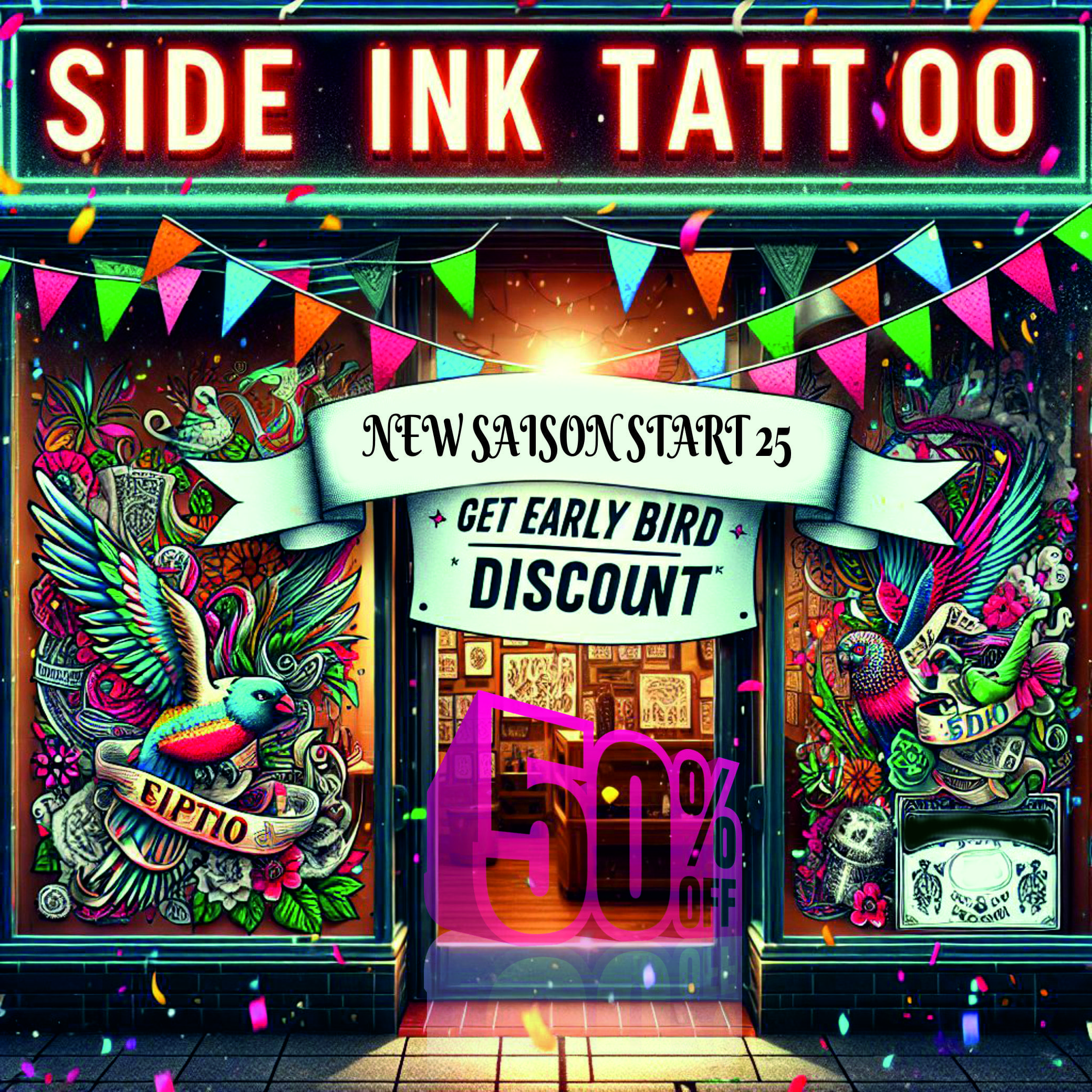 🎉 Saisonstart bei Side Ink Tattoo – Sichert euch 50 % Frühbucher-Rabatt! 🎉