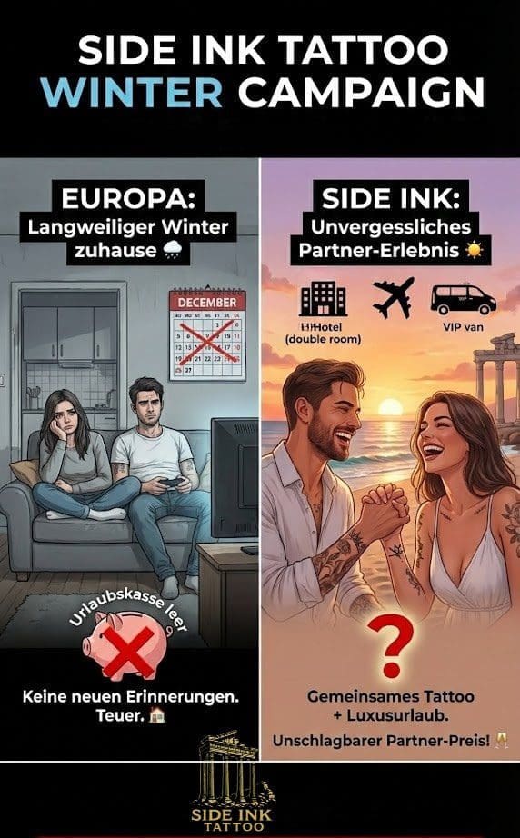 🇹🇷 Side Ink Winter-Paket: Unser Preis beinhaltet das gleiche hochwertige Tattoo +-Hotel + VIP-Transfer.